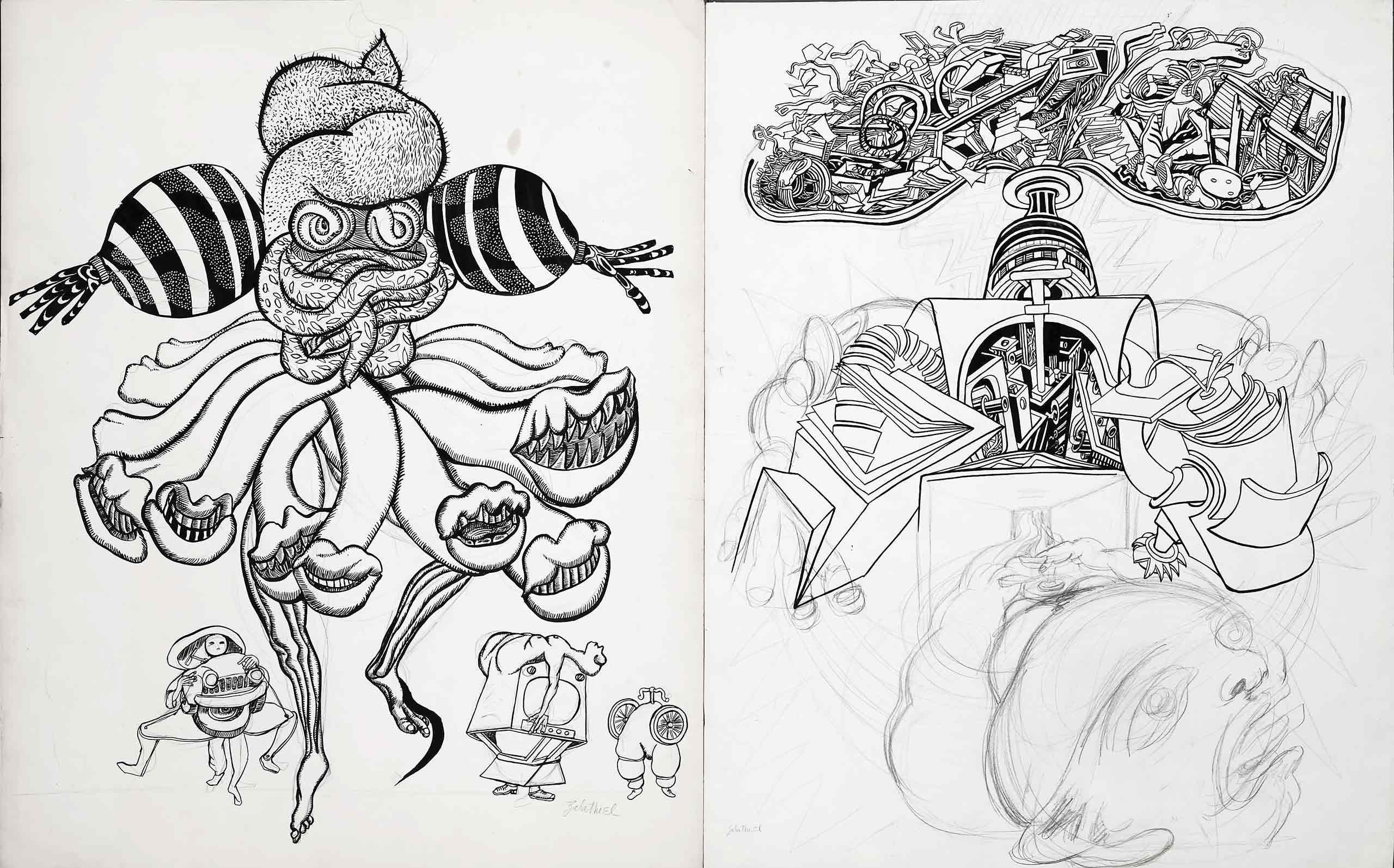 Début / 1y2–1518-1964-75-a-1964-75 – VARIOS / Oeuvre 1y2–1518-1964-75-a-1964-75 – VARIOS Fiche Technique Danzante de mierda Naciendo de la basura procesada- 1967 Tinta china y lápiz / papel 70,8 x 57,4 cm y 70,6 x 55,8 cm Antérieure Suivante