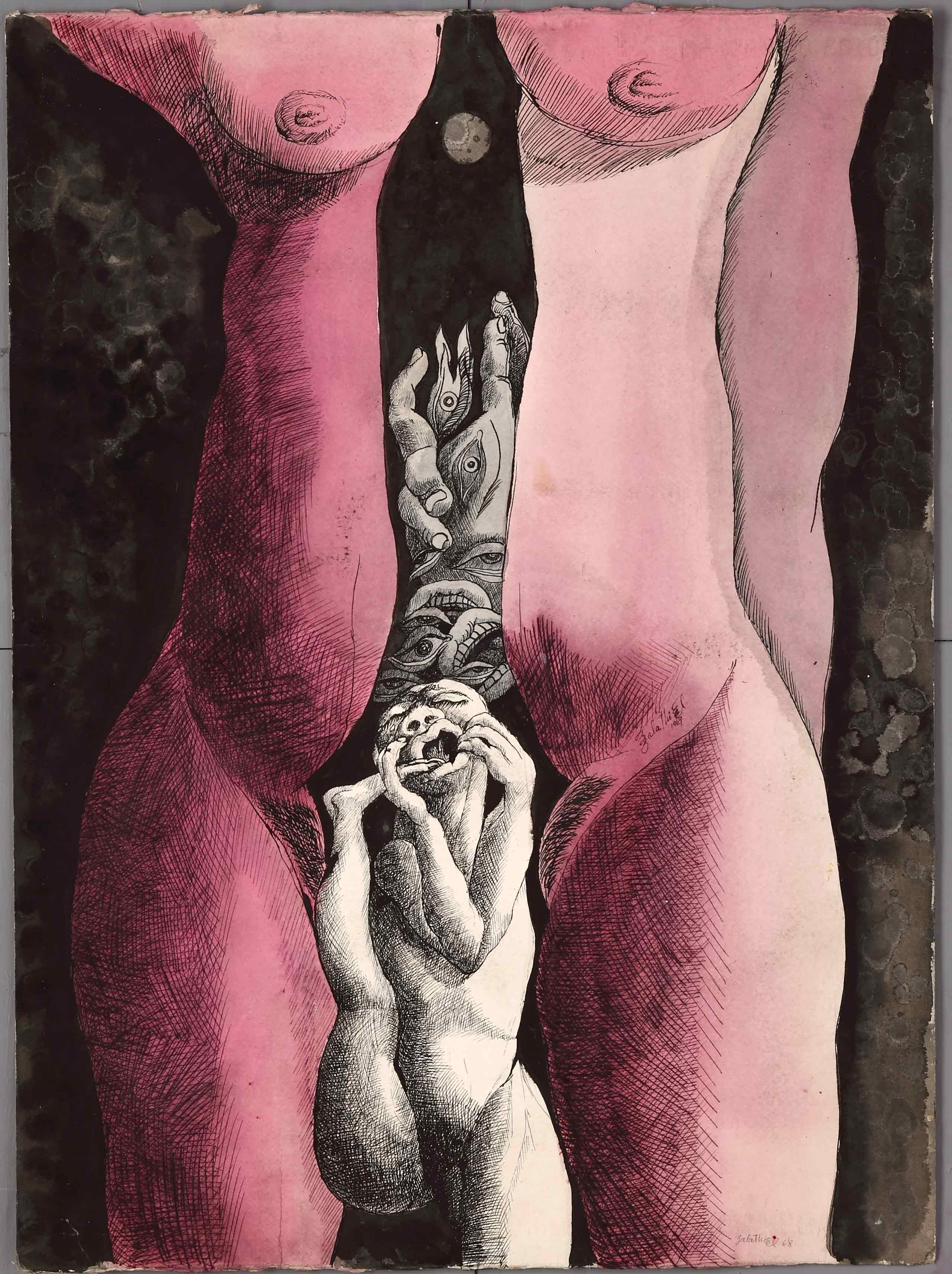 Début / 24-1544-1964-75-a-1964-75 – VARIOS / Oeuvre 24-1544-1964-75-a-1964-75 – VARIOS Fiche Technique Un caso freudiano- 1969 Tinta china, aguada de tinta negra y rosa 69,5 x 51 cm Antérieure Suivante