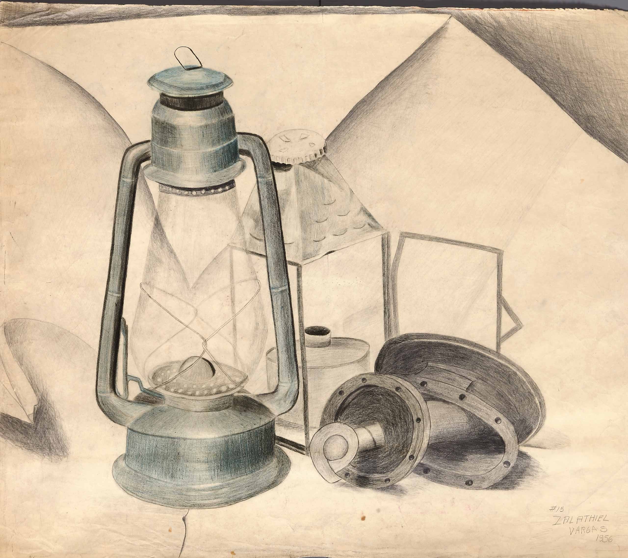NATURE MORTE 2. Crayon, crayon bleu, graphite s/papier 70 x 59 cm 1956