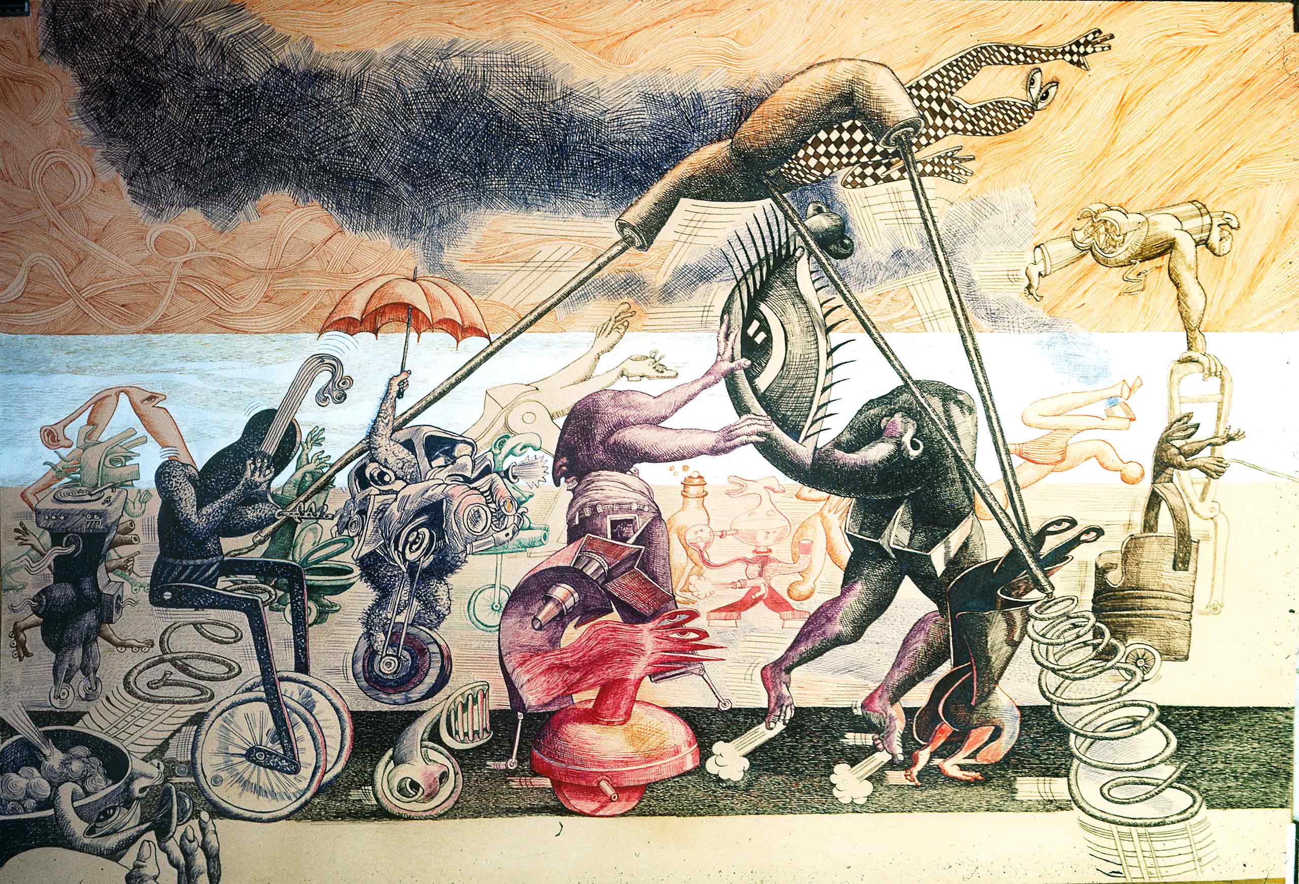 Début / 27-El-desfilecomix / Oeuvre 27-El-desfilecomix Fiche Technique El Desfile- 1972 Tinta china de color / papel Colección Elda Peralta Antérieure Suivante